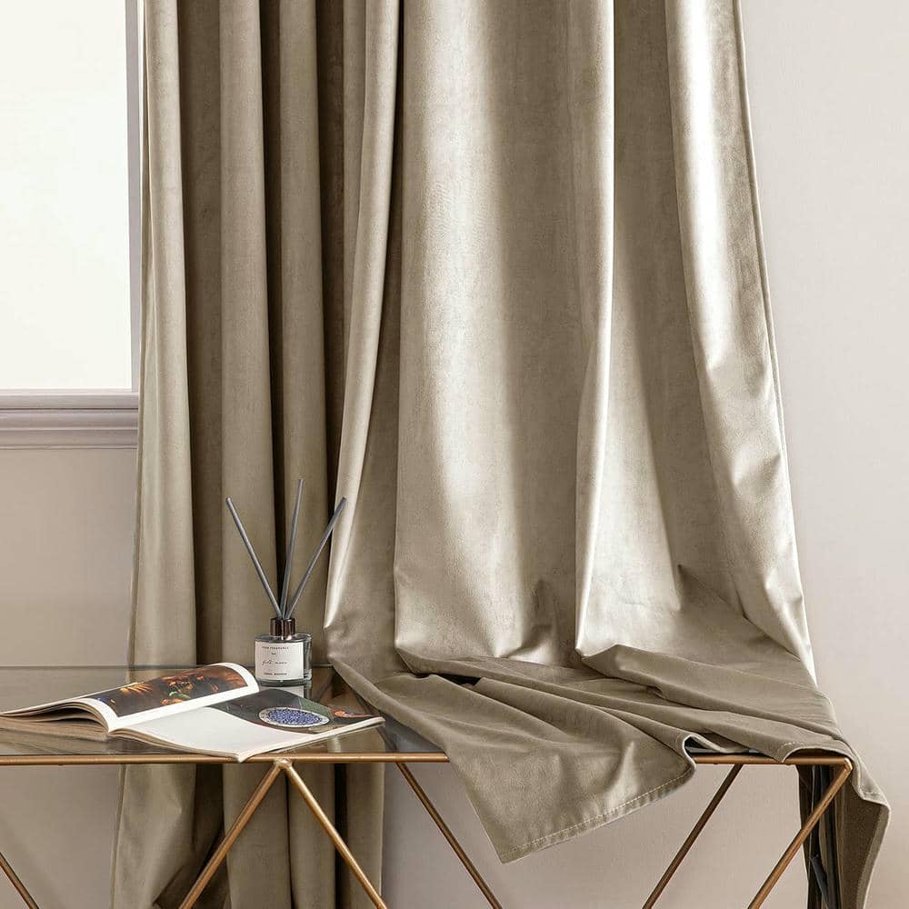 2 Pieces Plain Dyed Velvet Eyelet Curtains - Beige
