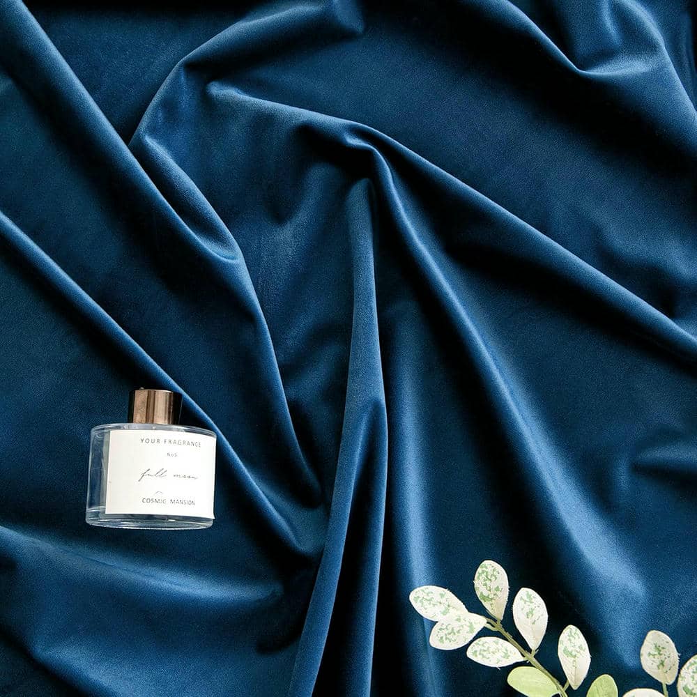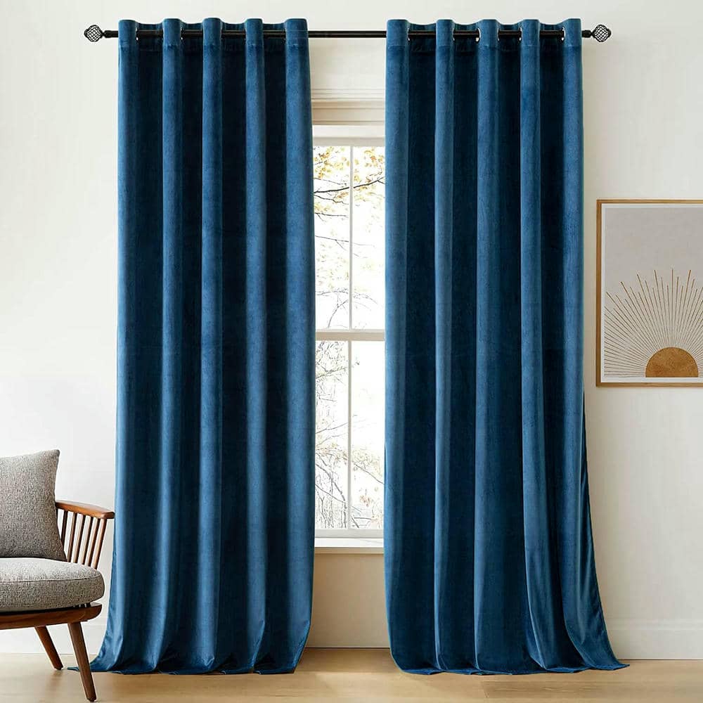 2 Pieces Plain Dyed Velvet Eyelet Curtains - Blue
