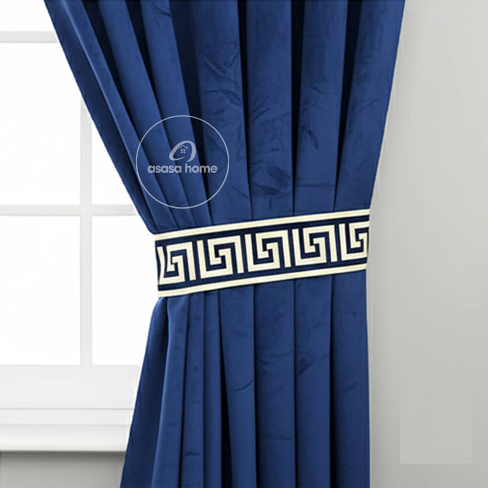 2 Pieces Premium splendid velvet curtain Panels & 2 Belts (Blue & White)