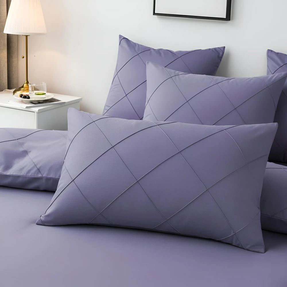 Cross Pleated Duvet Set - Light Purple