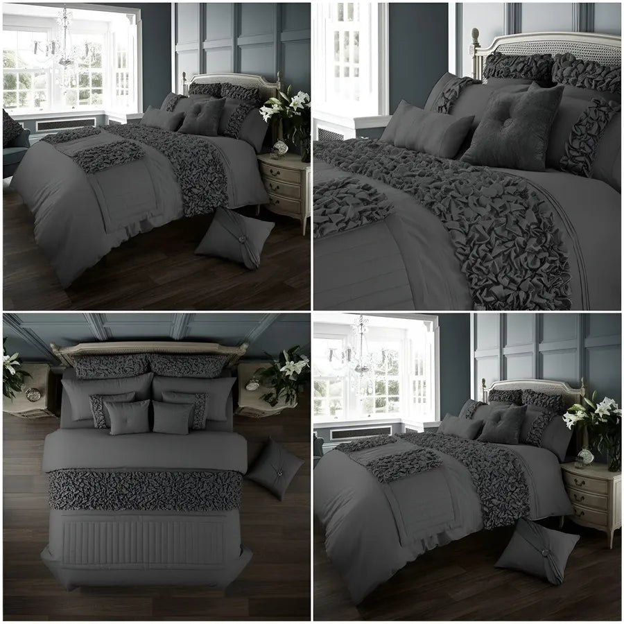 Elegant Bridal Quilt Set Grey - 12 Pieces with Free Quilt Filling
