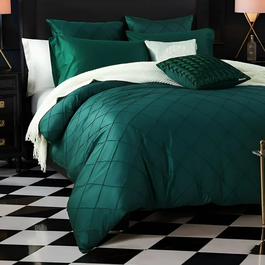Embellish Pleated Bridal Quilt Set Green - 12 Pieces Set with Free Quilt Filling