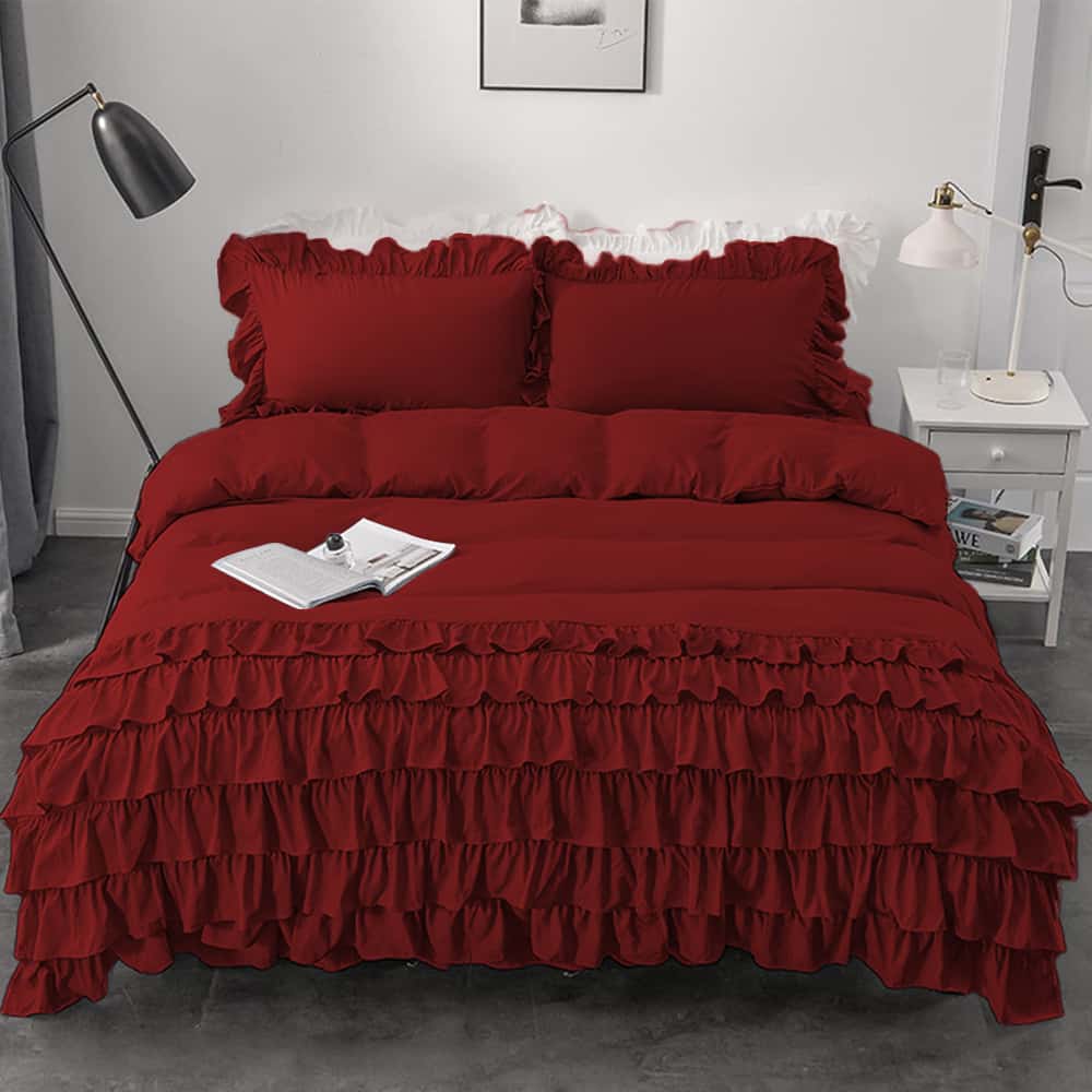Luxury Ruffle Duvet Set 8 Pieces - Red